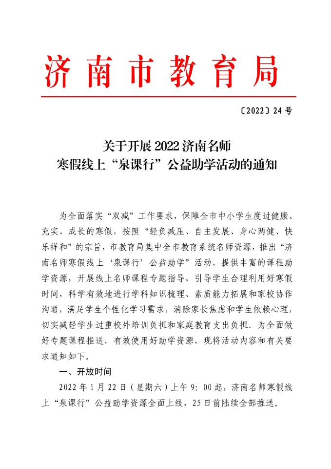 关于开展2022济南名师寒假线上“泉课行”公益助学活动的通知